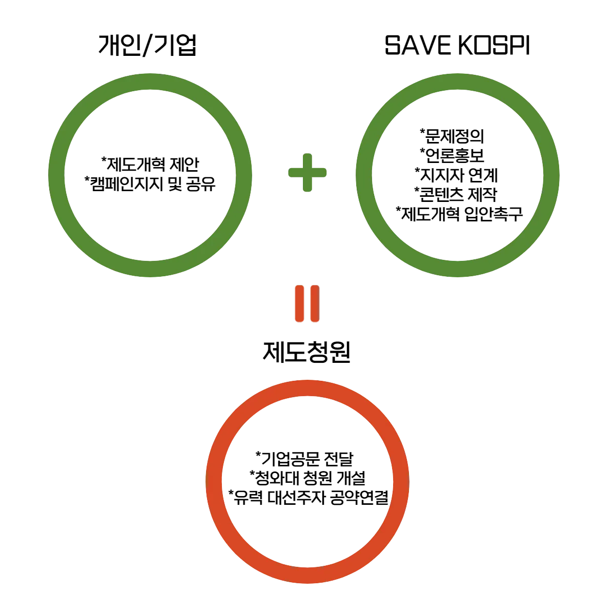 위와 같은 지지자들의 목소리와 세이브코스피의 제안을 취합해 제도개혁 청원문을 만듭니다.